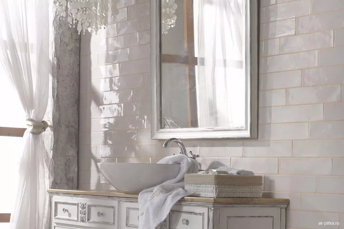 Эта плитка не потребует специального ухода и особых чистящих средств. Температура обжига глазури делает её стойкой к постоянному контакту с водой и агрессивным средам, поэтому она уместна в душевых зонах и на кухонных фартуках.