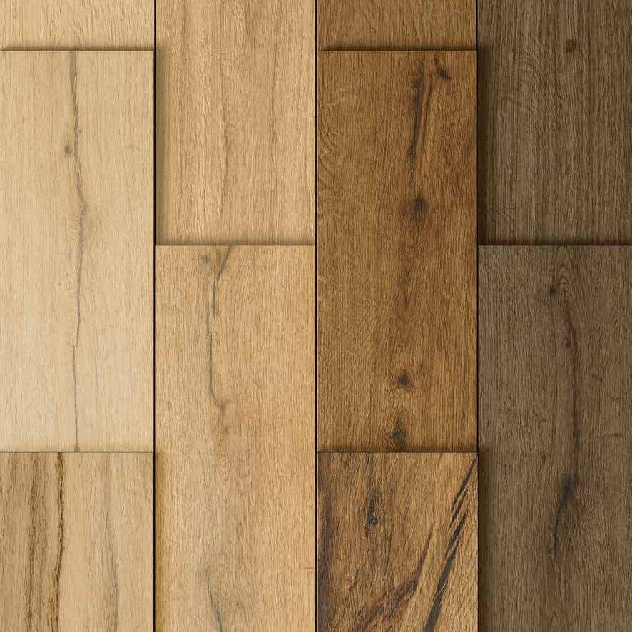Четыре цвета керамического паркета в формате 20x160 с тремя типами график.