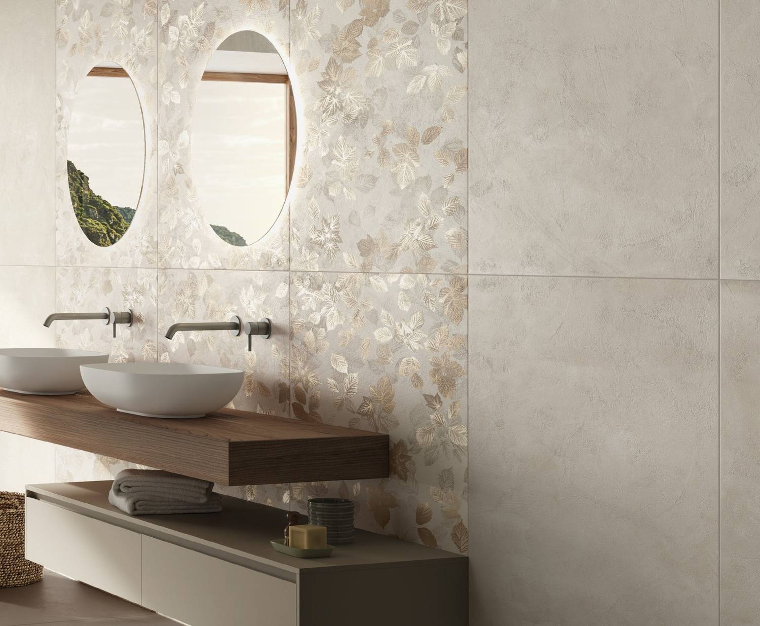 Весь модельный ряд подходит под укладку с минимальным швом на стыках. Этого удаётся достигнуть за счёт ректификации краёв плитки. Комбинации базовых модулей и декорации позволяют реализовывать многослойные композиции, с выделением ниш в пространстве и расстановкой корректных стилистических акцентов. Такое сочетание природного начала и современного дизайна с нотками скандинавского минимализма соответствует актуальным трендам в архитектуре.