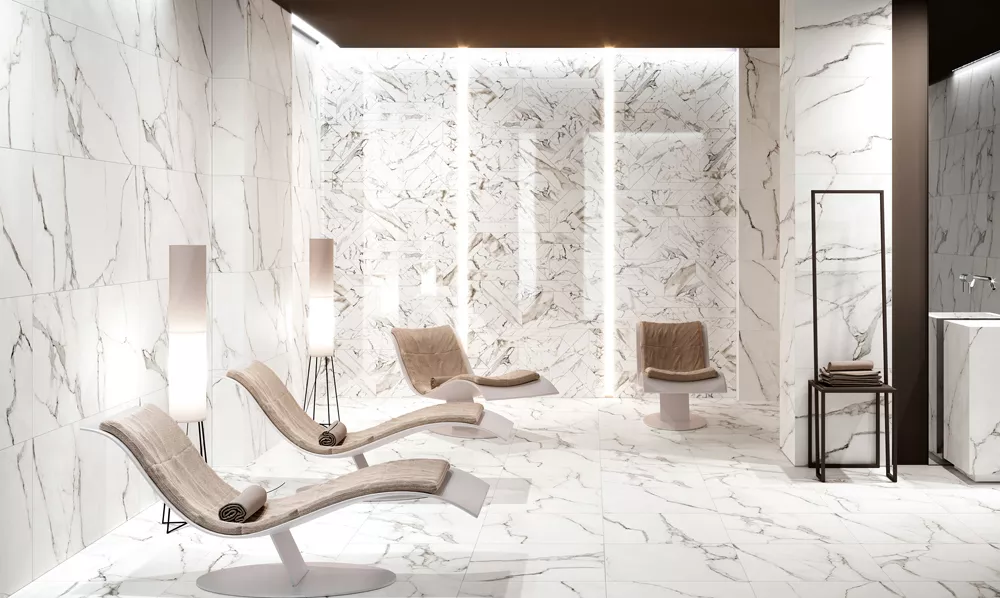 Серия отлично подходит для облицовки и создания роскошного интерьера. Из года в год плитка может использоваться для укладки на разные поверхности. Это адаптирует дизайн к большим и маленьким помещениям.