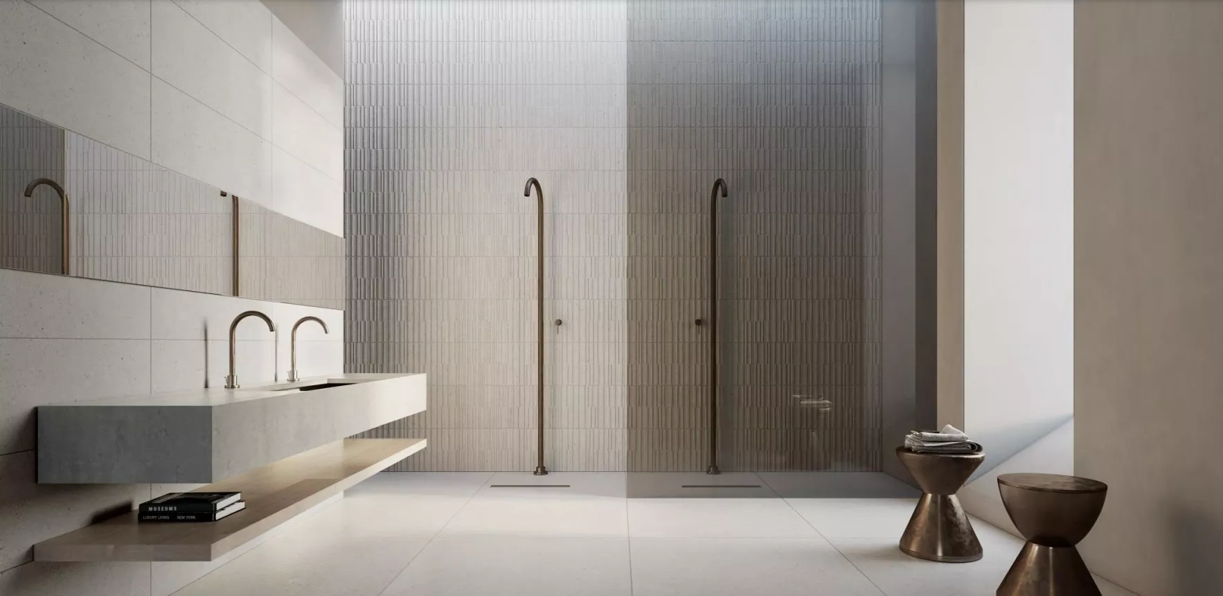 - прямоугольный керамогранит 60x120, координированный по цвету с стеновой облицовкой,