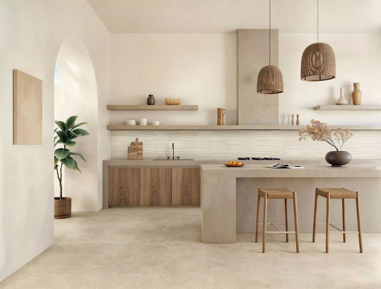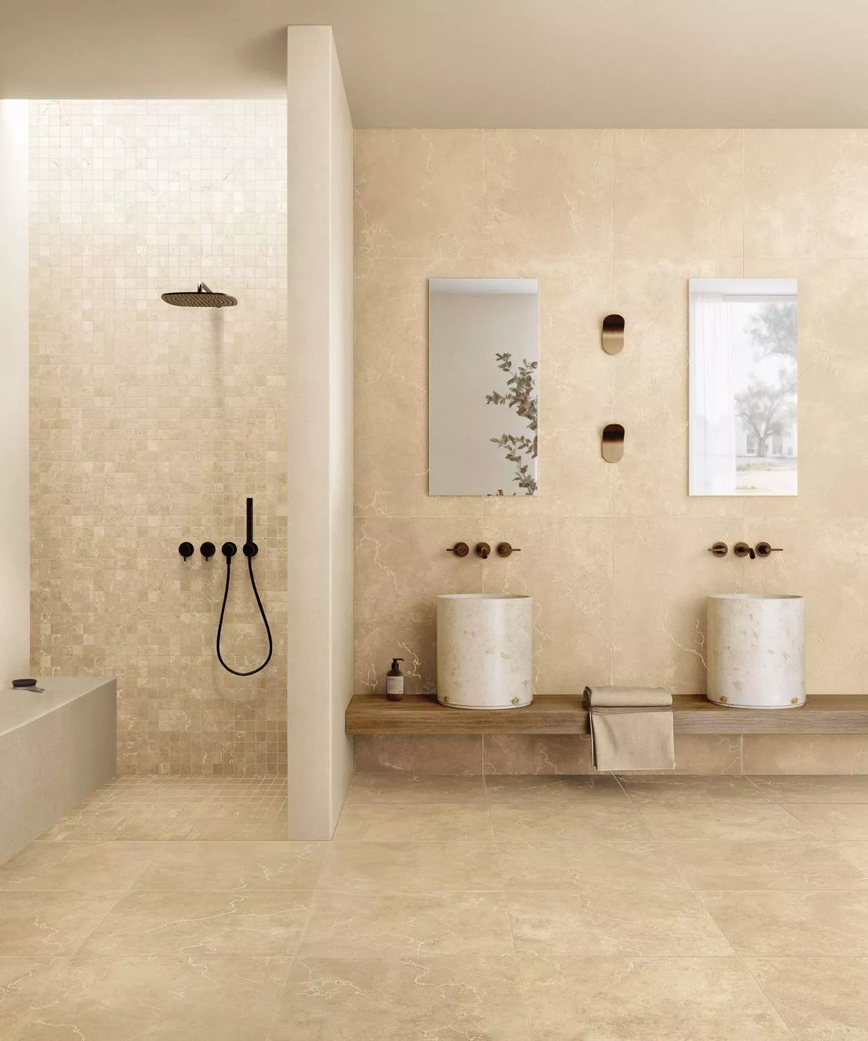 - Объёмная фактура с выразительными глянцевыми прожилками на матовой керамике.